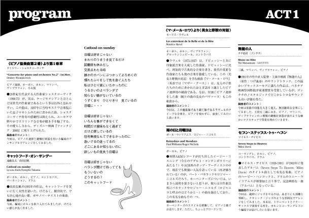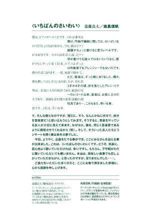 今回、ようやく、企画にをたてる事ができ、ここにみなさんを迎える事が出来ました。これは、<いちばんのさいわい>です。どうぞ、気楽に、居心地よく聴いていただければ、幸いですし、もちろん、子守唄がわりに聴いていただいても構いません。本当は、美味しい食事でも召し上がっていただきながら、と思ったのですが、至りませんでした・・・。